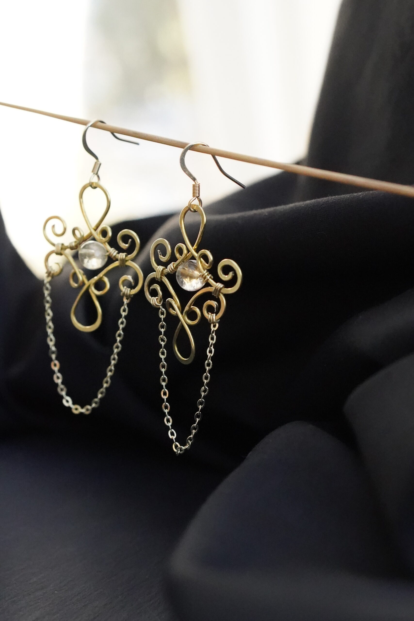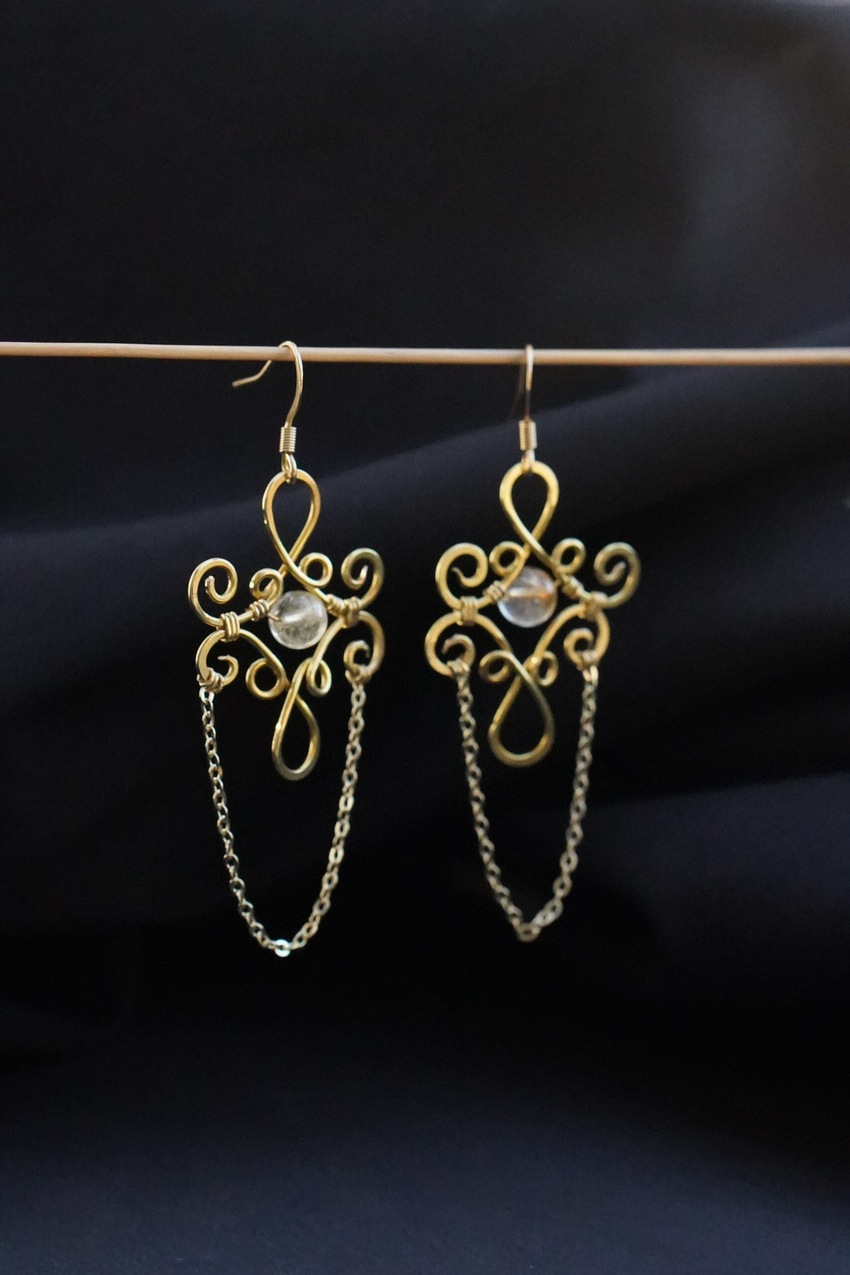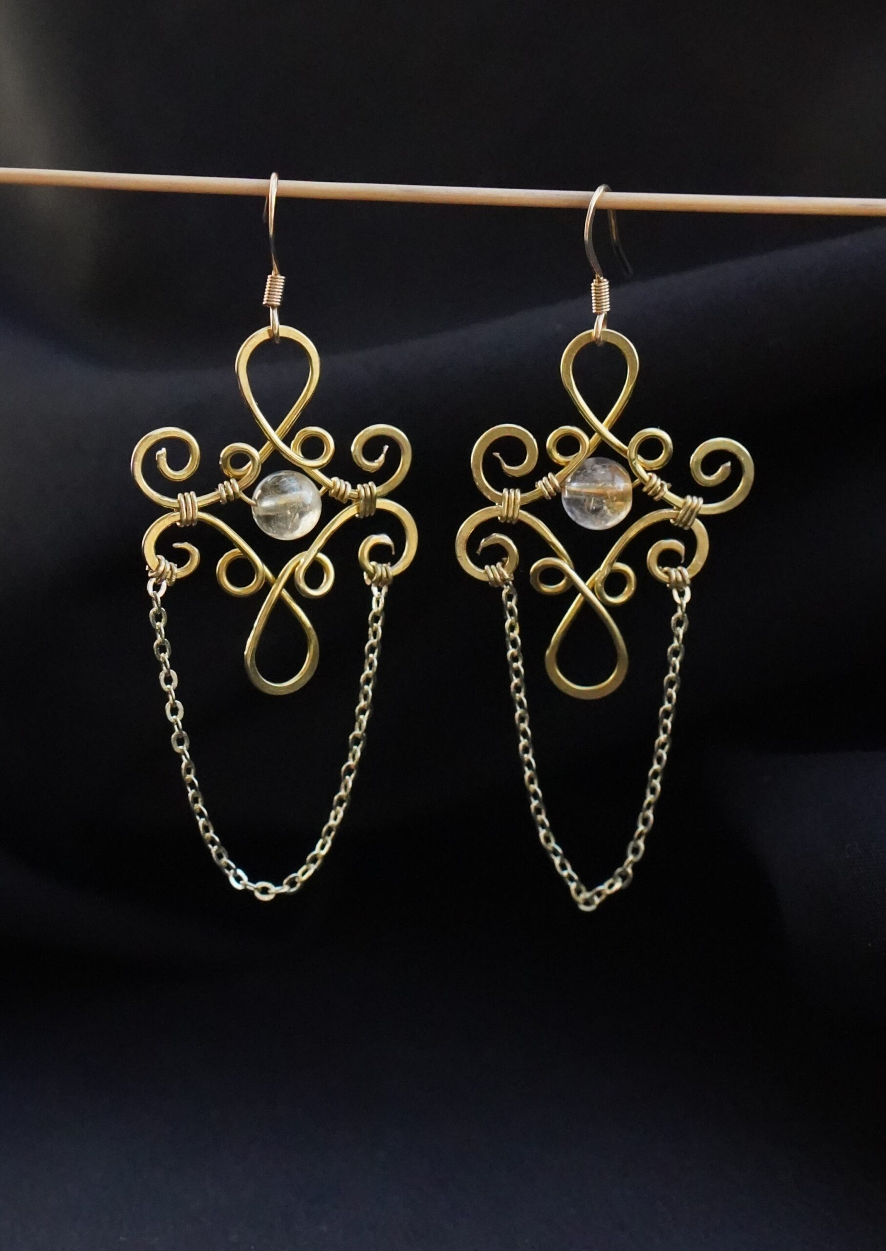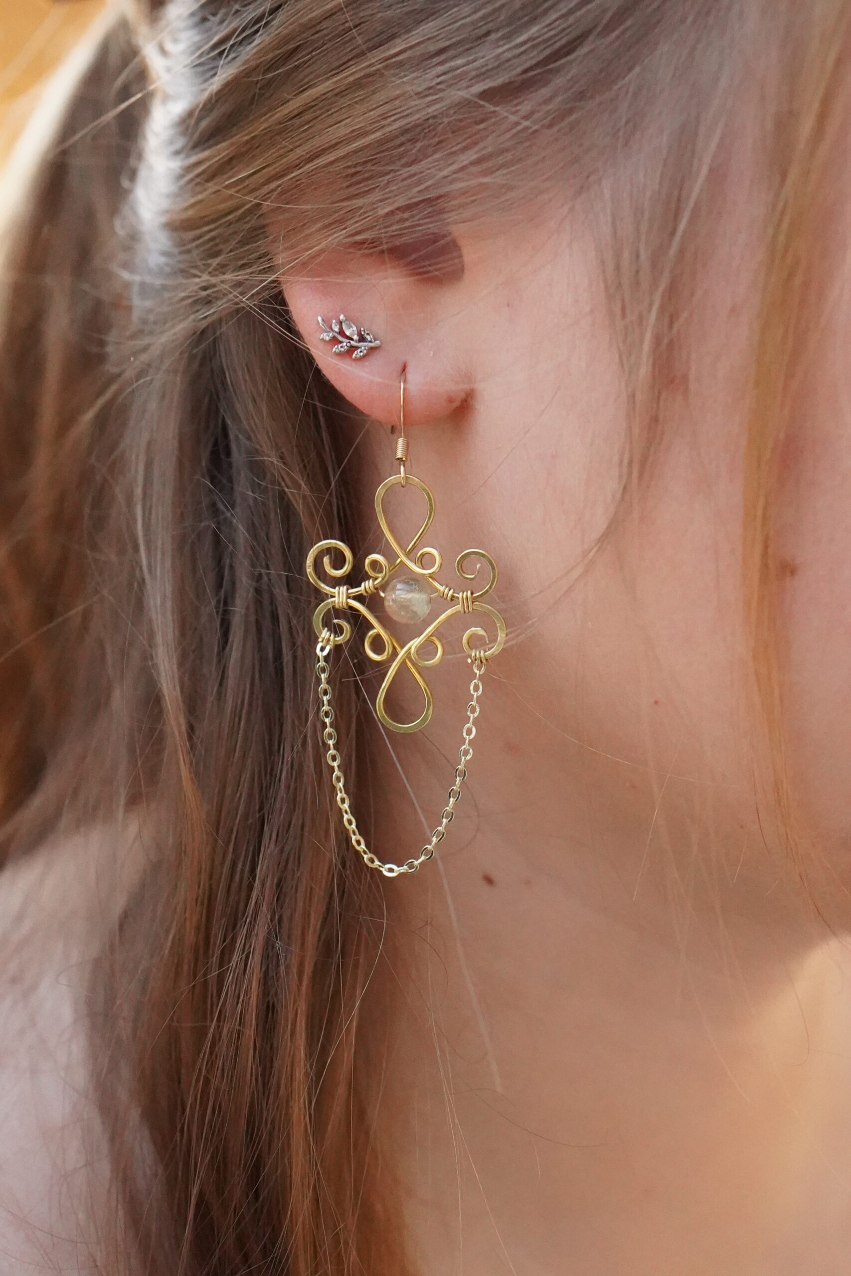 Diese Ohrringe bestehen aus hochwertigem Messing und werden in Österreich vollständig von Hand gefertigt. Das Design setzt auf verspielte, organische Formen, die dem Schmuckstück eine leichte und lebendige Ausstrahlung verleihen. Im Zentrum jedes Ohrrings befindet sich ein echter Citrin, ergänzt durch vier weitere Citrinperlen, die harmonisch in die Formgebung eingebunden sind. Das Messing ist glatt poliert, langlebig und hypoallergen, wodurch die Ohrringe auch für empfindliche Haut gut geeignet sind. Durch ihr geringes Gewicht lassen sie sich angenehm tragen und passen sowohl zu schlichten Outfits als auch zu ausdrucksstarken Looks.