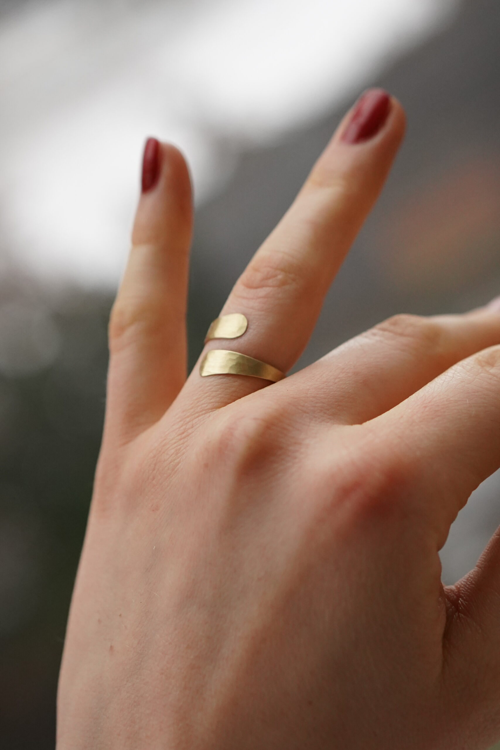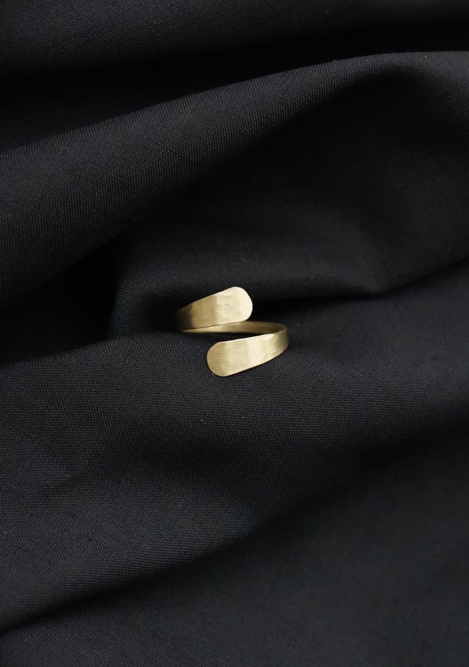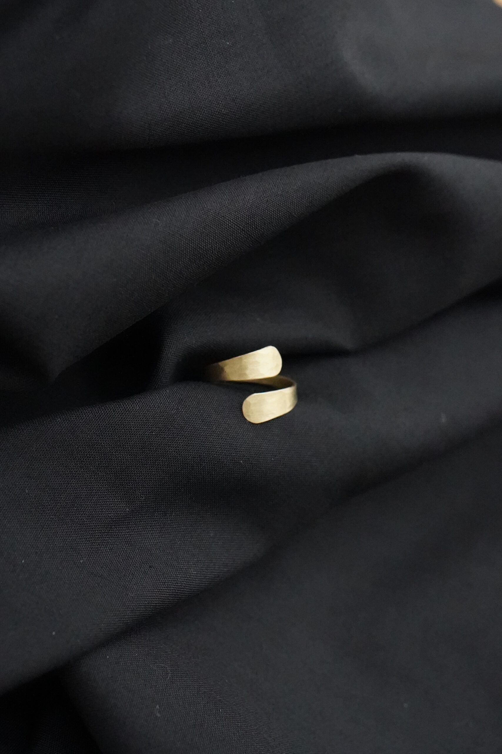 Dieser schlichte, aber dennoch sehr präsente Ring wurde sorgfältig von Hand aus Messing gefertigt und besticht durch seine klare, reduzierte Form. Sein Oberfläche ist ein einzigartiger Blickfang, da das leichte Hammerschlag Muster die Oberfläche zum Funkeln bewegt.
